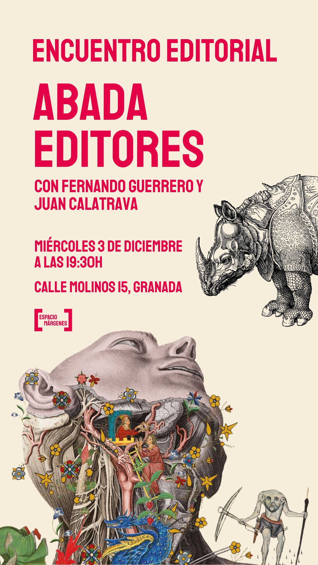 Este miércoles 3 de diciembre, a las 19:30 h, Abada Editores participará en un encuentro editorial en Espacio Márgenes (Granada, calle Molinos, 15). Fernando Guerrero,