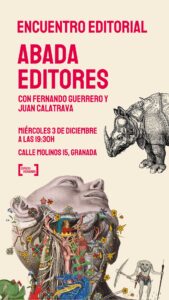 Este miércoles 3 de diciembre, a las 19:30 h, Abada Editores participará en un encuentro editorial en Espacio Márgenes (Granada, calle Molinos, 15). Fernando Guerrero,