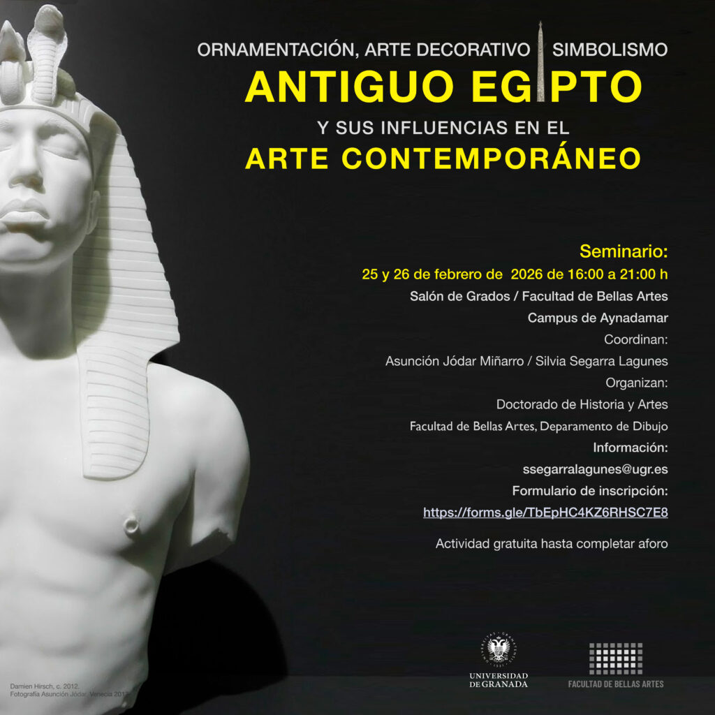 El seminario presentará la ornamentación egipcia como un sistema coherente donde estética, religión y política se fusionaban, señalando cómo sus símbolos y motivos han trascendido hasta nuestros días influyendo en las culturas mediterráneas, en el arte europeo y en la estética contemporánea. Se celebrará en la Facultad de Bellas Artes de la Universidad de Granada los días 25 y 26 de febrero en horario de tarde. Adjuntamos programa detallado: