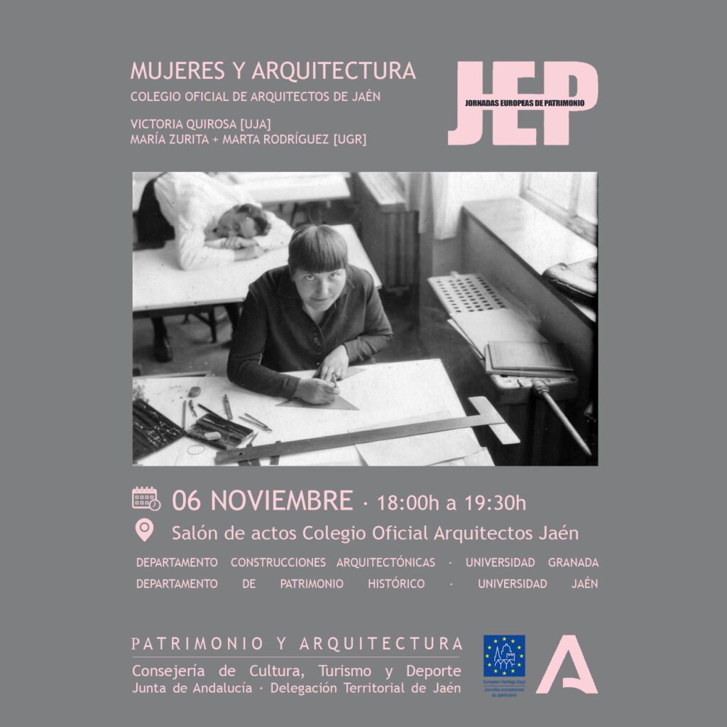 En el marco de las Jornadas Europeas de Patrimonio 2025, cuyo lema es “Patrimonio y Arquitectura: una ventana al pasado, una puerta hacia el futuro”, el próximo 6 de noviembre tendrá lugar una presentación del libro Mujeres en la arquitectura, editado por Ana del Cid Mendoza, Marta Rodríguez Iturriaga y María Zurita Elizalde (Editorial Universidad de Granada, 2023), en el Colegio Oficial de Arquitectos de Jaén.